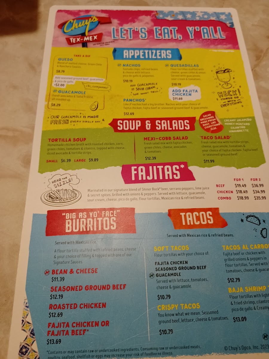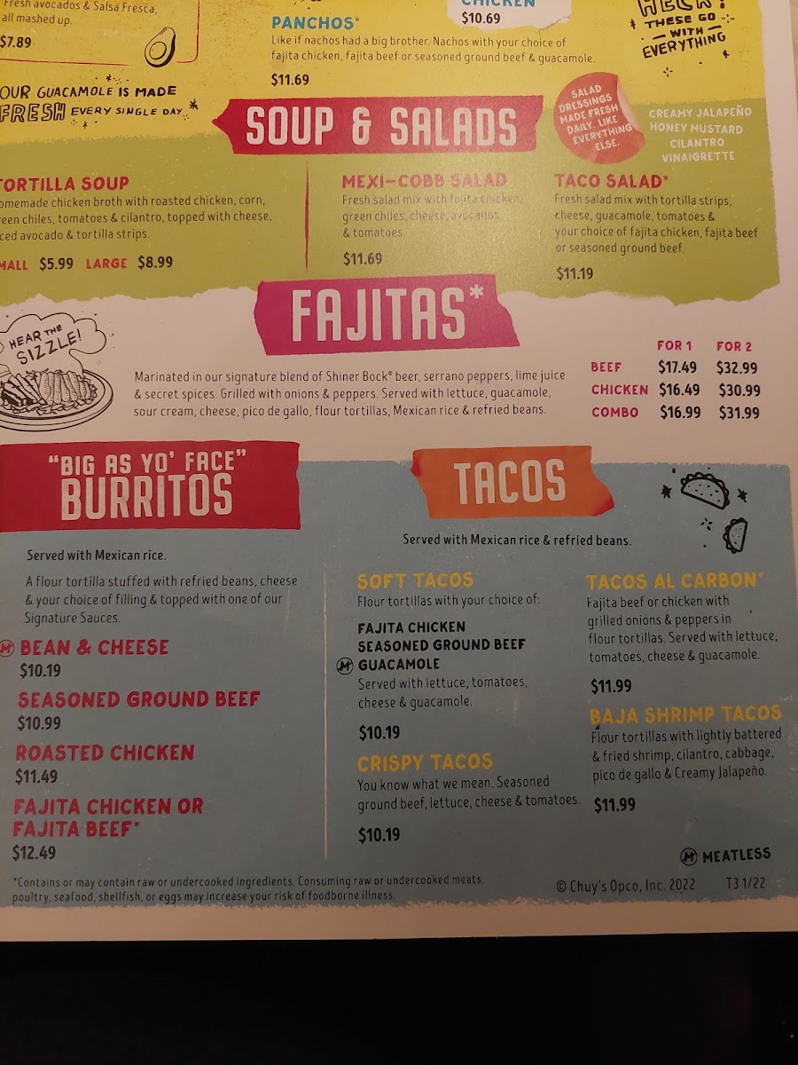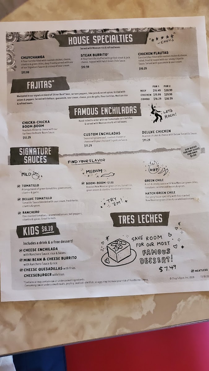 Families will enjoy kid-friendly options like Cheese Enchiladas and Chicken Fingers. Don’t forget to save room for dessert; the Tres Leches cake and Churro Bites will leave you wanting more. With its charming atmosphere and delightful dishes, Chuy's is a must-visit for any food lover.